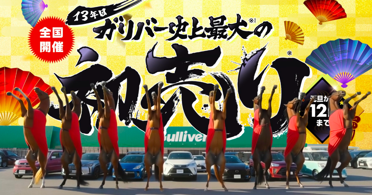 read more 2025-12-312026-04-02 13年目ガリバー初トク初売りTVCM 作品名:13年目ガリバー初トク初売りTVCM 弊社でプロデュース、制作、キャスティングを担当いたしました。 制 …